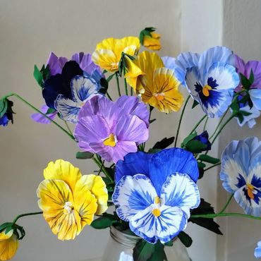 With over 30 years experience as a floristand a lifetime surrounded by plants, in 2022 creative Richard Brazington launched The Paper Plantsman. Since then Richard has spent this time mastering the craft, learning new techniques and expanding the range .Based around a core collection of three of his favourite plants - gaeraniums, pansies and auriculas. Seasonal flowers and plants also make an appearance when the season dictates .